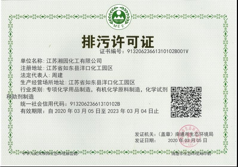 單位名稱:江蘇湘園化工有限公司