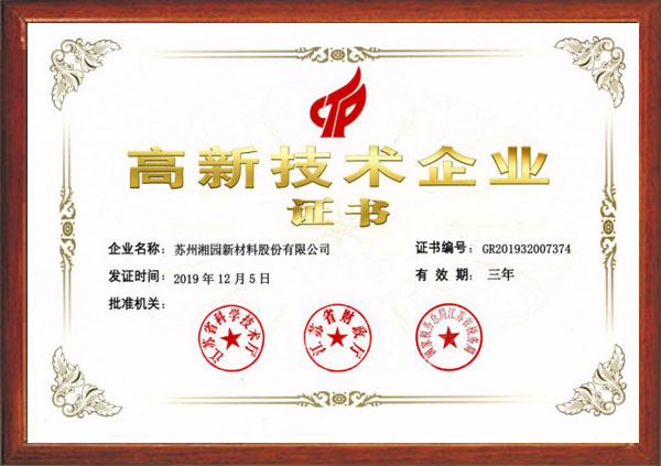 獲評(píng)為江蘇省高新技術(shù)企業(yè)(江蘇湘園)