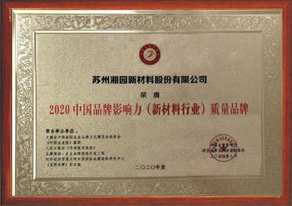 獲評(píng)2020中國(guó)品牌影響力(新材料行業(yè))質(zhì)量品牌企業(yè)