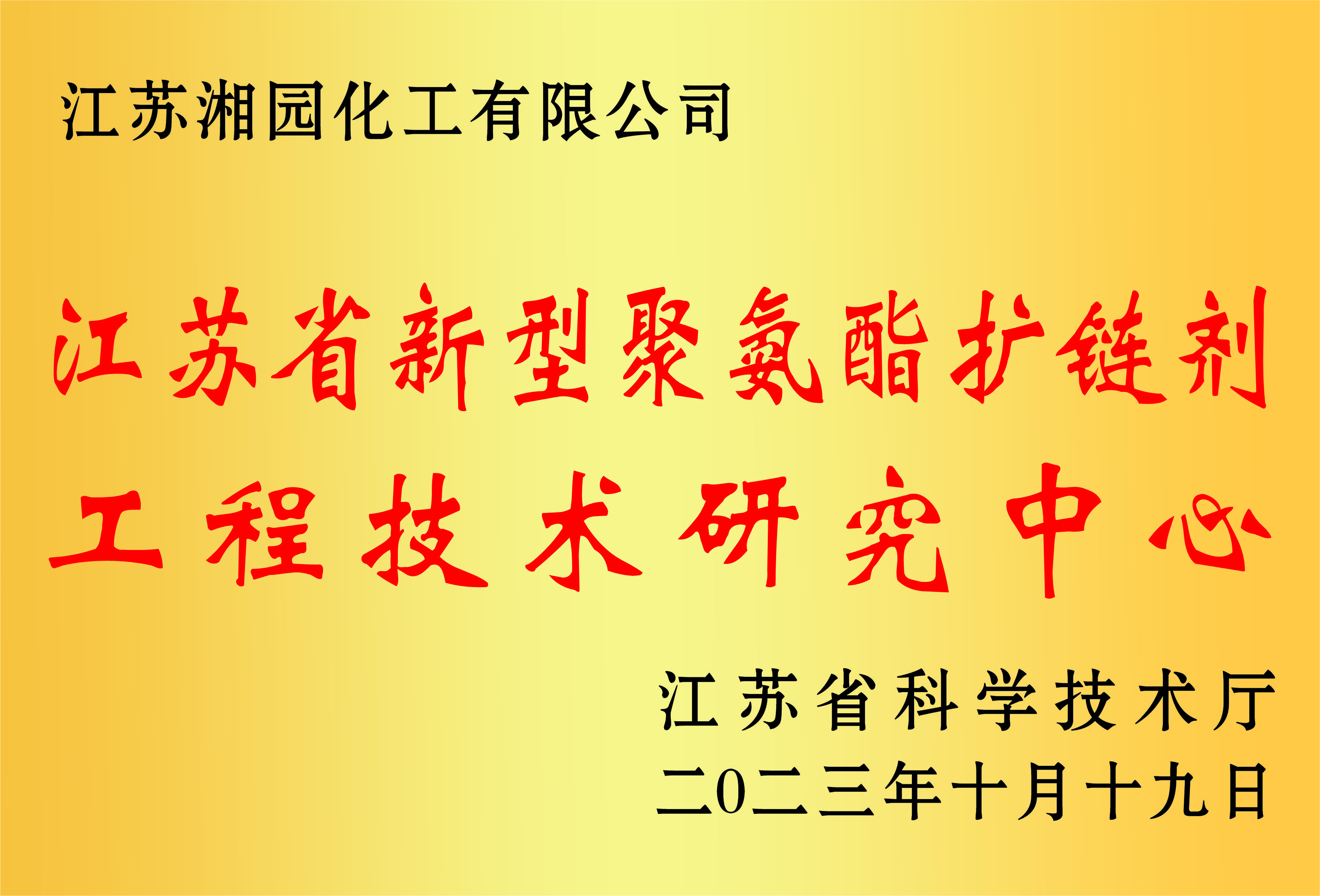 獲評(píng)為江蘇省新型聚氨酯擴(kuò)鏈劑工程技術(shù)研究中心